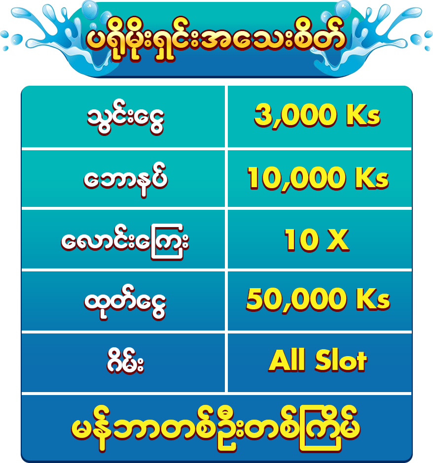 ❄️ ေဘာနပ္ျဖင့္ စေလာ့ဂိမ္းအားလုံးကစားႏိုင္ၿပီး JILI Dragon Treasure / Secret Treasure / Crazy Hunter ကန႔္သတ္ဂိမ္းမ်ားကစားလို႔မရပါ။ ကစားထားပါက ေငြမထုတ္ေပးပါ။