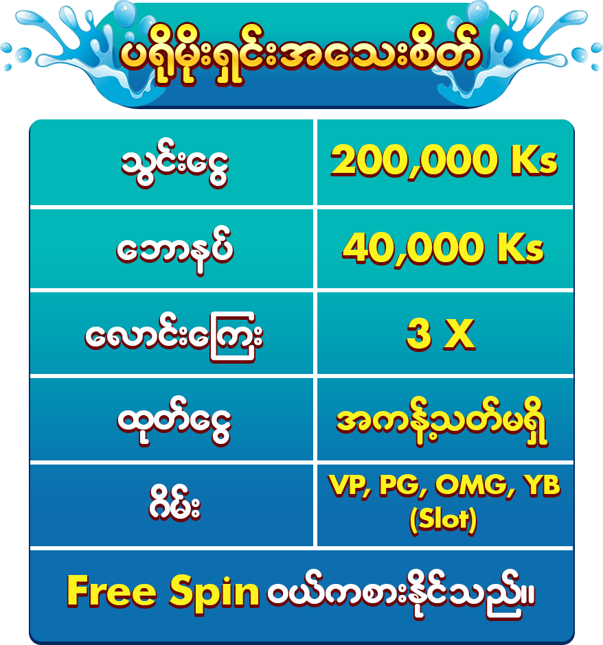 ⚠️ ေငြထုတ္အေကာင့္ (MOBILE PAY, BANK, USDT) မွန္ကန္မႈရွိမွသာ ေဘာနပ္မွတ္ခံစားခြင့္ရွိမည္။